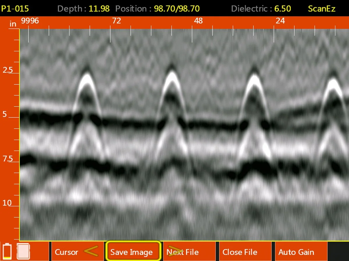 While using our larger ground penetrating radar equipment on a 1,000 mhz antennae does provide images of rebar and other structures within the concrete, it is too large for most concrete applications and cannot provide the detail that the concrete scanning radar equipment provides. We have rented the smaller concrete scanning equipment, but the cost of rental and shipping is not cost effective for most projects.